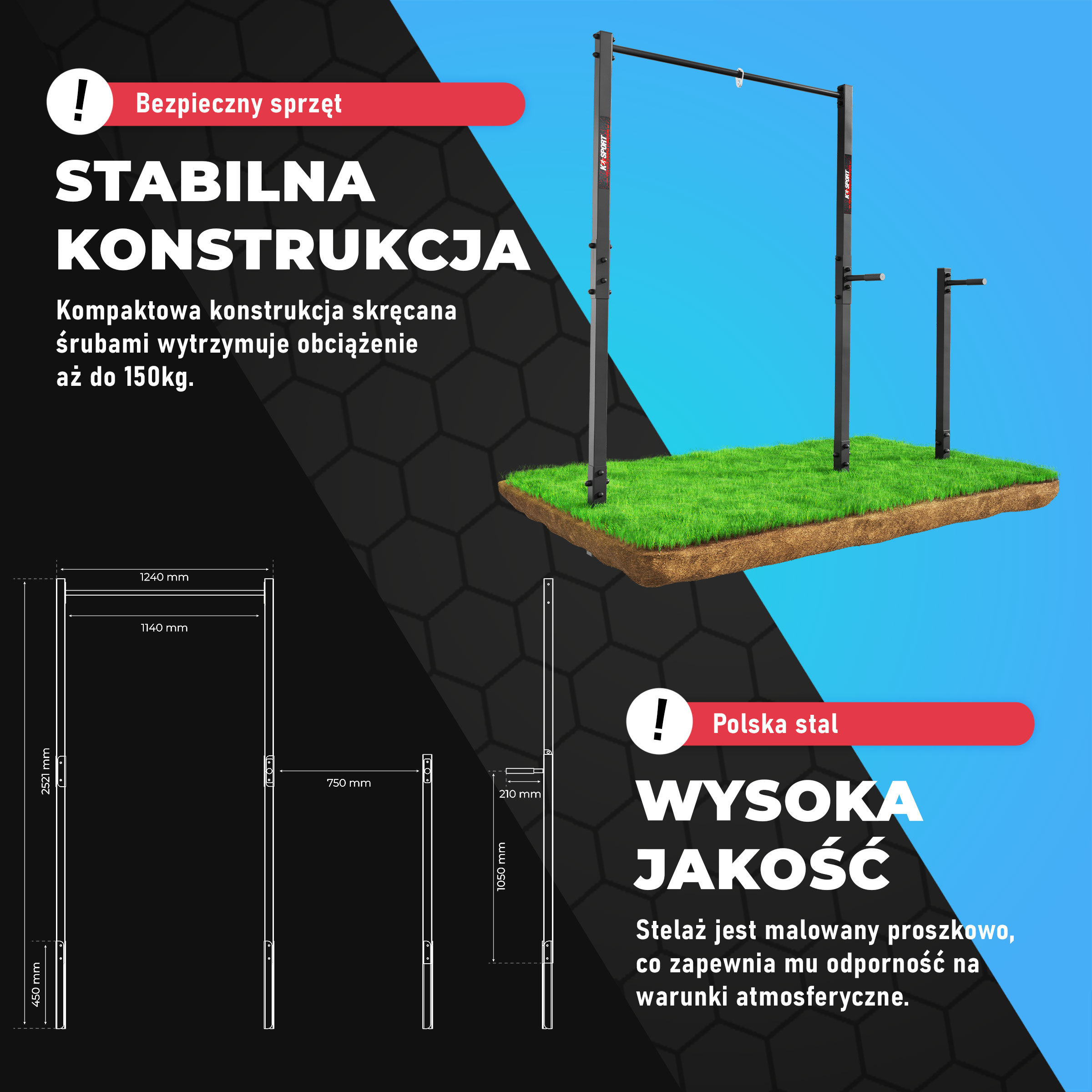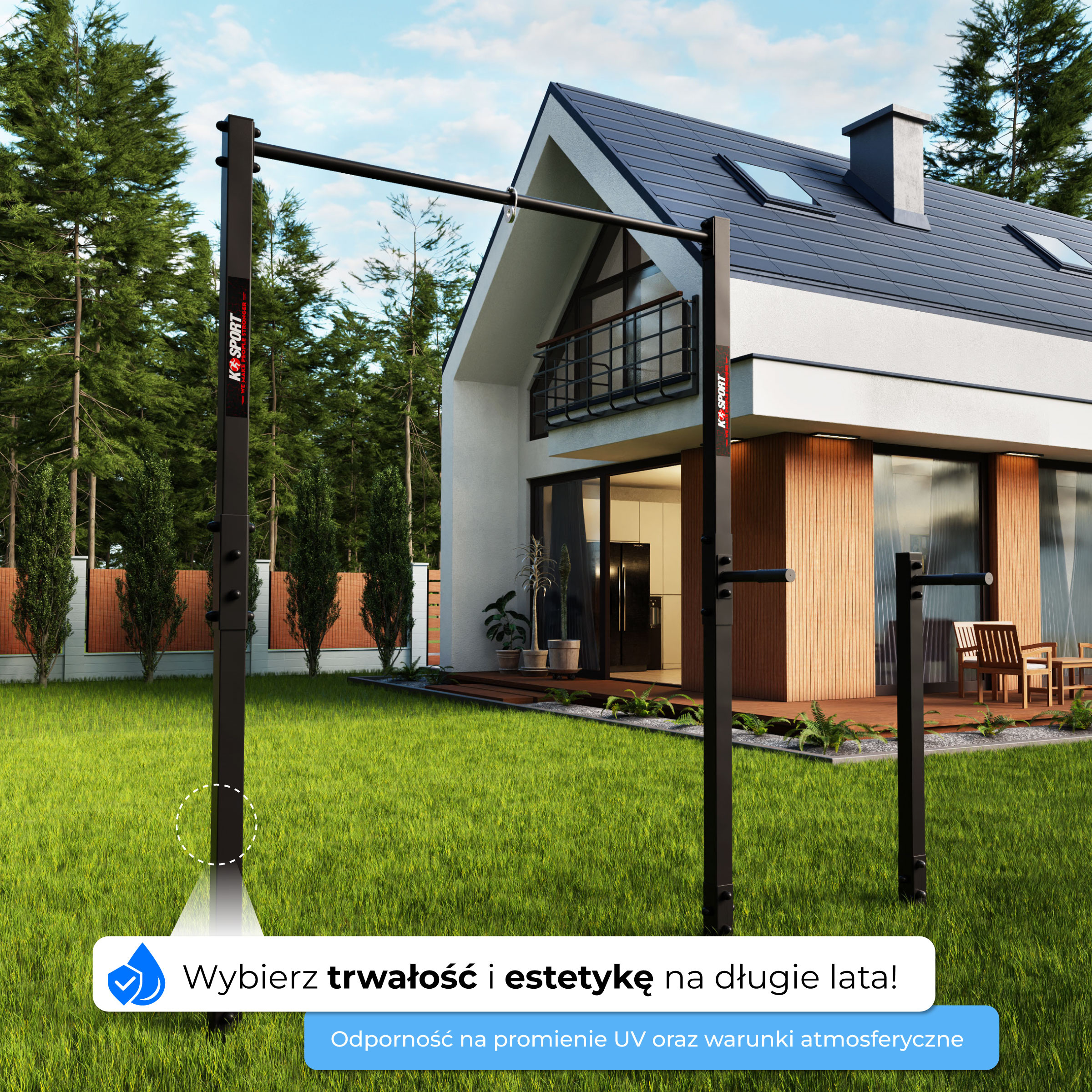 • Drążek idealny do ćwiczeń na dworze. Z jego pomocą przeprowadzisz rozbudowany trening kulturystyczny czy gimnastyczny. Wzmocnisz wiele grup mięśniowych, poprawisz wytrzymałość i gibkość. Doskonale nadaje się do trenowania elementów gimnastyki.