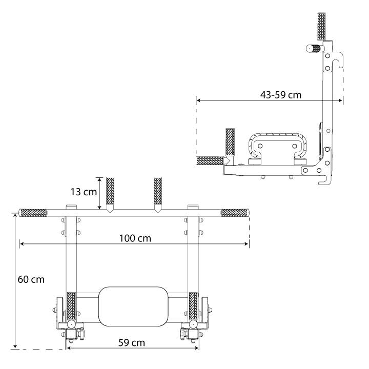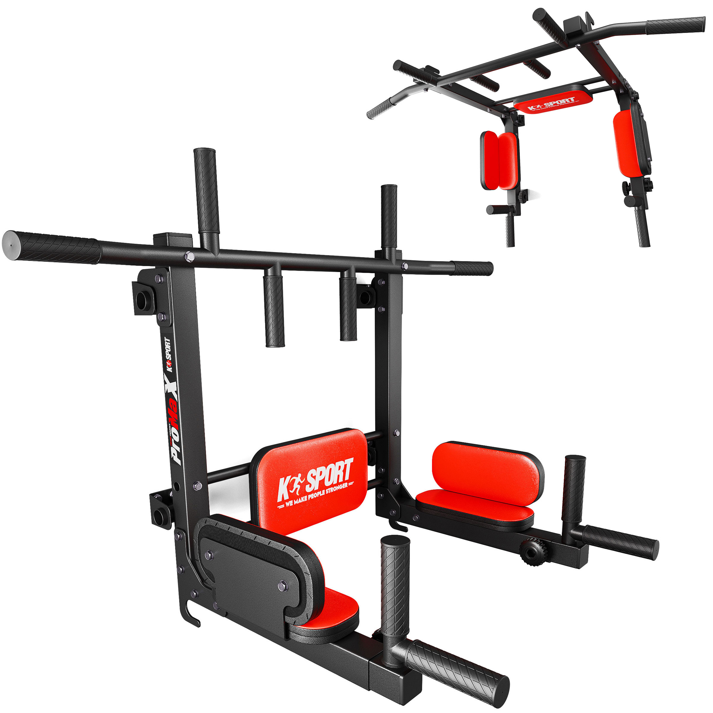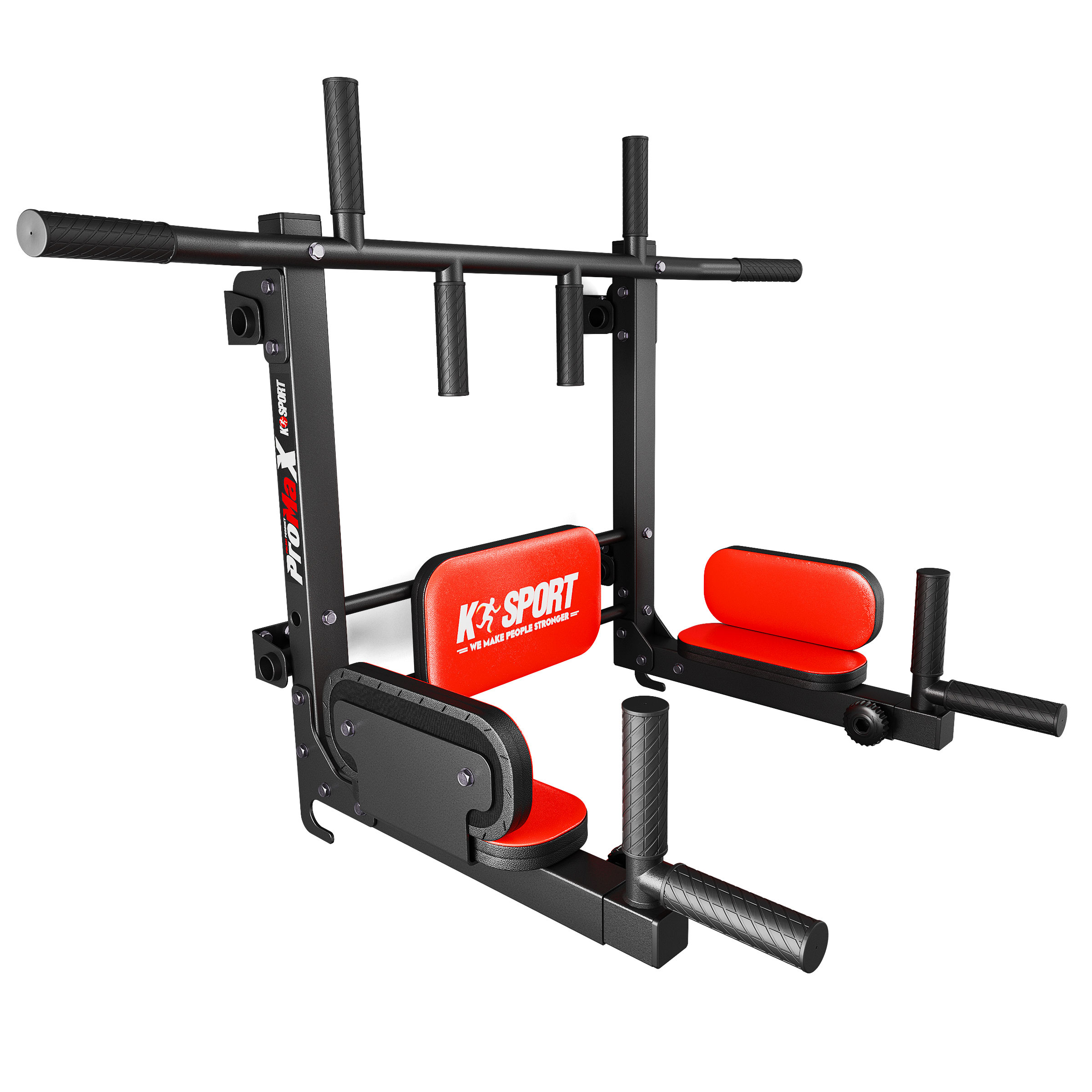 • Sprzęt przeznaczony do montowania na ścianie. Posiada dwa sposoby montażu, dzięki czemu można go używać jako drążka do podciągania lub poręczy do dipów.