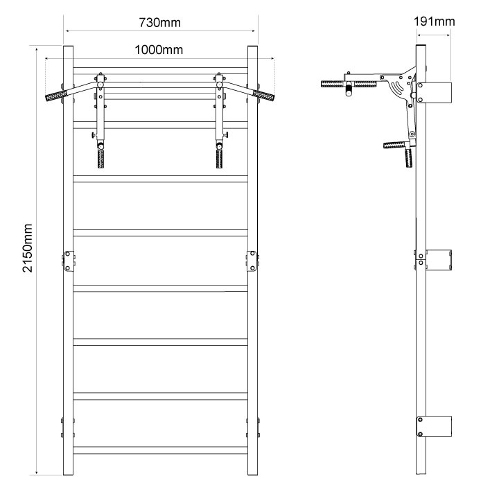 Drabinka z drążkiem solidna Oceniam na 5 gwiazdek bo w tej cenie na prawdę bardzo przyjemna opcja Wykonałem jednak przeróbkę- oryginalne mocowania drabinki do ściany są moim zdaniem zbyt długie drabinka odstaje bardzo daleko od sciany- wykonałem własne wsporniki o długości 11 cm (około 10cm krótsze niz oryginalne) i zastosowałem pod nie podkładkę w postaci drewna na całej długości- polecam zastosowanie podkładki pod mocowanie w przypadku montażu do ściany gipsowanej. Aczkolwiek bez zmiany długości wsporników, za drabinką mamy fajne miejsce na sztangi, ewentualny sprzęt. W zestawie znajdziemy wszytskie niezbędne części Z wagą 90kg daje sobie radę fatastycznie Wzrost 180, zamontowane w pokoju o wysokości 265, miejsca na głowę nad drążkiem wystarczająco i swobodny zwis również możliwy
