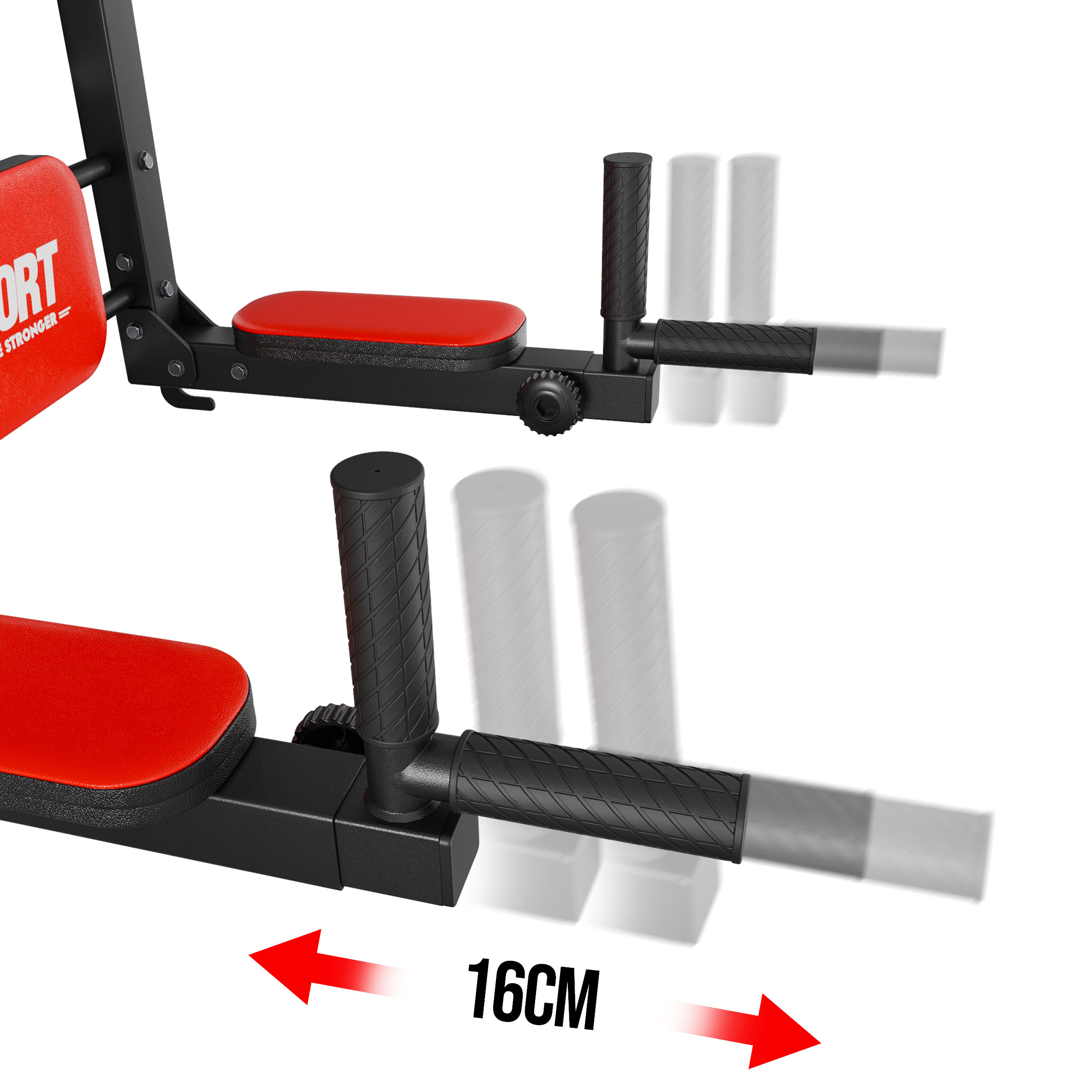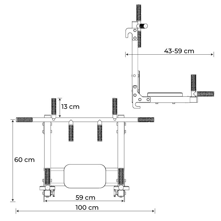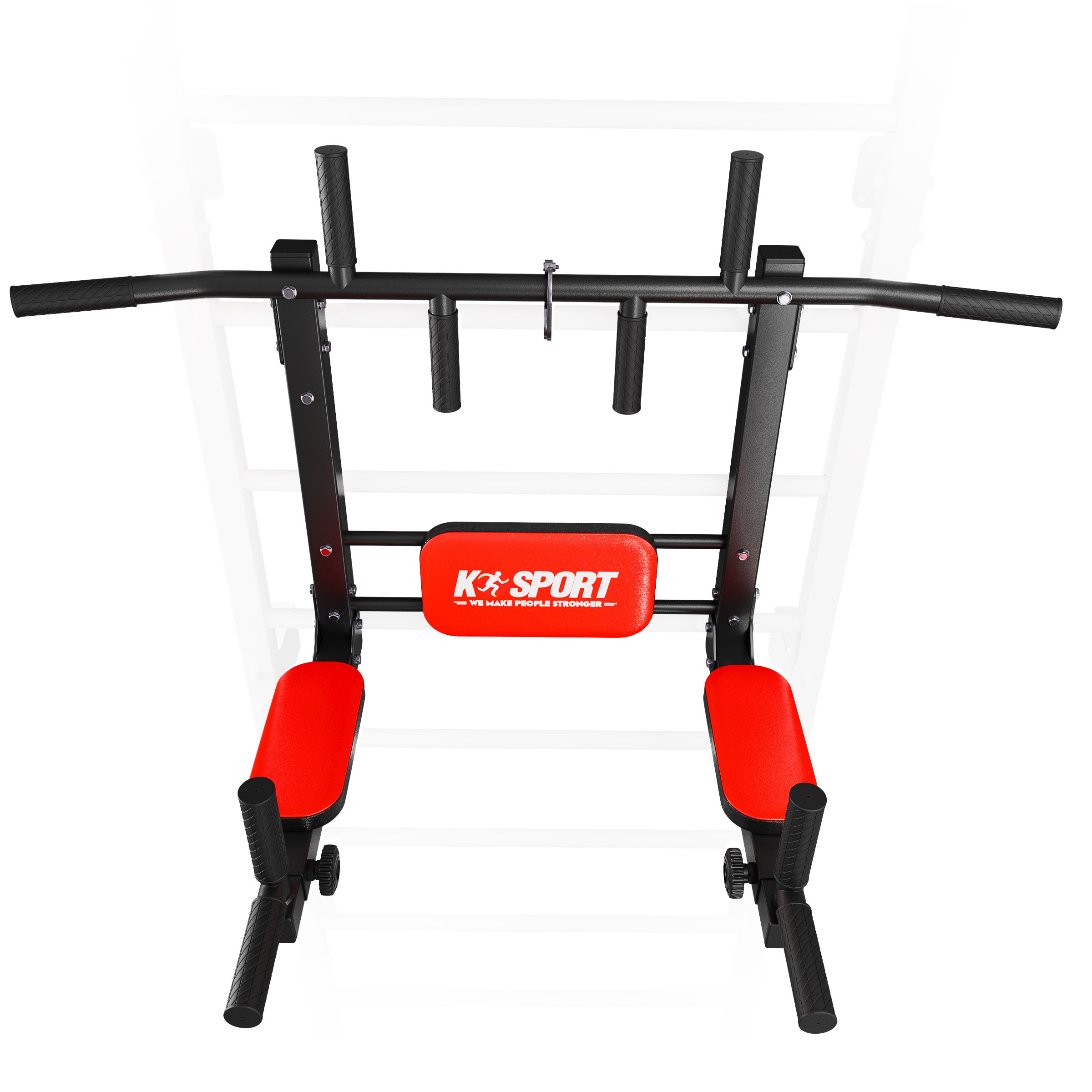 • Sprzęt przeznaczony do montowania na drabince. Posiada dwa sposoby montażu, dzięki czemu można go używać jako drążka do podciągania lub poręczy do dipów. Wiele możliwości profesjonalnego treningu mięśni pleców i ramion dzięki pięciu różnym chwytom.