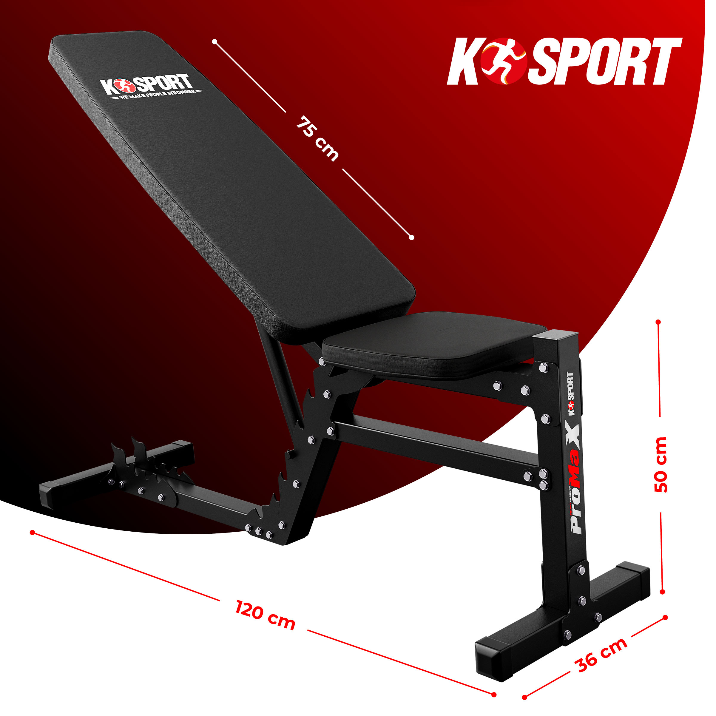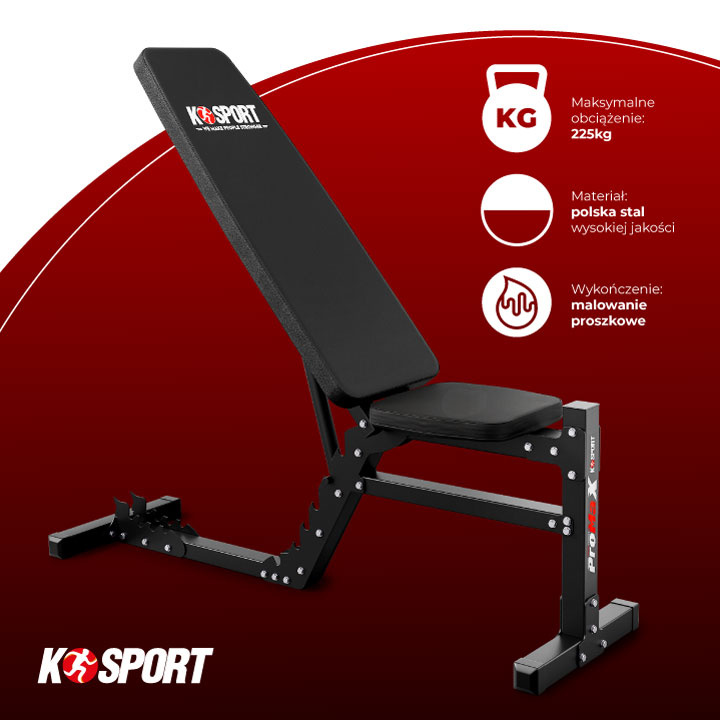 • Ławeczka treningowa KSSL010.2 to stabilny i wytrzymały sprzęt, który wytrzyma aż do 225 kg obciążenia. Posiada 11-stopniową regulację oparcia, co wpływa na komfort Twoich ćwiczeń.